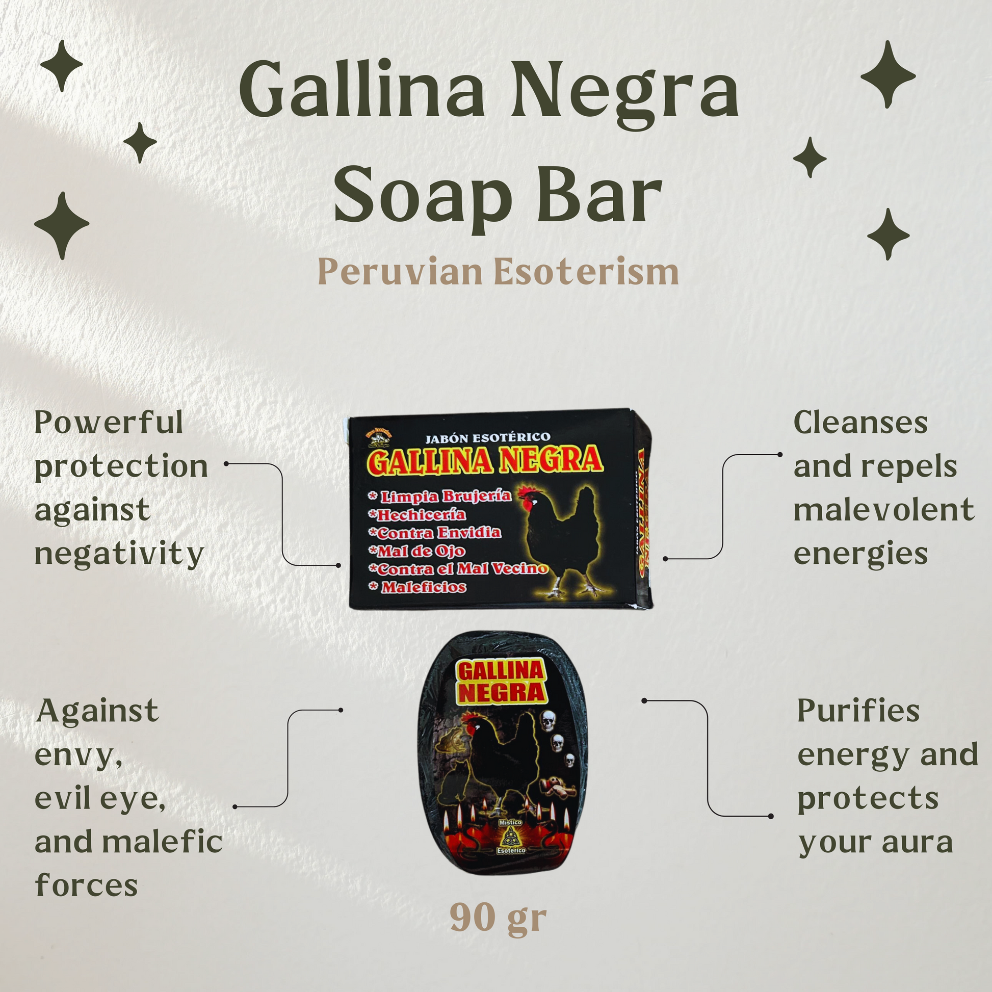 Gallina Negra Soap Bar - Powerful Protection Against Envy, Evil Eye, and Malevolent Energies - Cleansing and Warding 90gr 1 unit